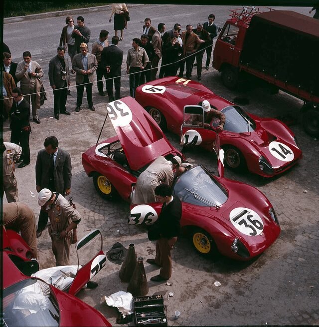 Ferrari Dino 206s and 330P3 during the 1966 1000 Km of Monza (1367×1400) Leave a Comment / Awesomeness submitted by /u/abt137 [link] [comments]